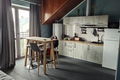— Полноценная кухня со всей бытовой техникой: холодильник, кофемашина, микроволновая печь, чайник, плита, посуда.